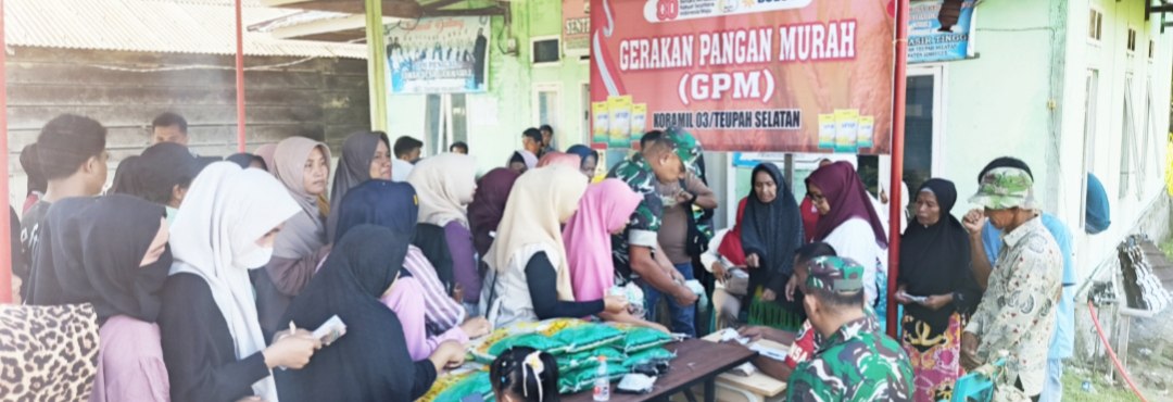 Kodim 0115/Simeulue bersama Perum Bulog Simeulue menggelar Gerakan Pangan Murah (GPM), di Balai Desa Pasir Tinggi, Kecamatan Teupah Selatan, Rabu (13/08/2025). Foto : hariandaerah.com