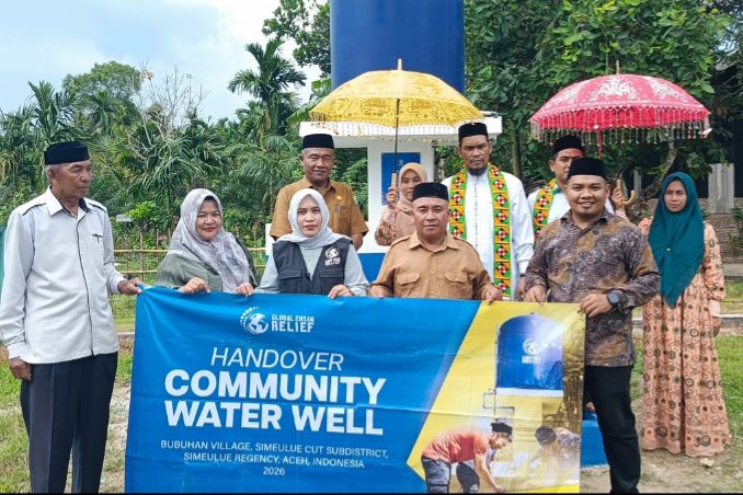 SIMEULUE – Organisasi kemanusiaan internasional Global Ehsan Relief (GER) menyerahkan bantuan berupa water well (sumur air) sebagai fasilitas wudhu di Masjid BaiCut Aziz, Desa Bubuhan, Kecamatan Simeulue Cut, Kabupaten Simeulue, Selasa (03/03/2026).