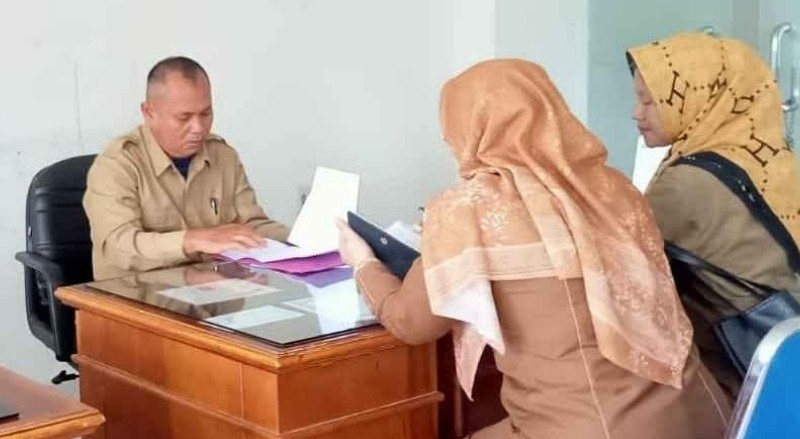 Kabag Kesra Sekretariat Daerah Kabupaten Simeulue, Ilham SE Saat Menerima 7 orang Siswa Prakrin SMKN 1 Simeulue Timur yang berlangsung di ruang Kerja Bagian Kesra, Senin 16/1/2023. (Foto: hariandaerah.com/Agus Muliadi).
